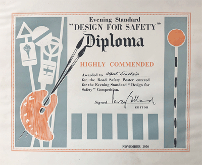 It’s amazing the things we keep from our childhood. Albie is no exception with a very cool ‘Design for Safety Diploma’ for entering a road safety competition in 1956; a painting of boats (which I would happily hang in the gallery now); and a countryside painting with wildlife (Albie and I had a good laugh at that one). Some artists take themselves very seriously. Albie doesn’t, so hence including a bit of humour before you view the exhibition!
